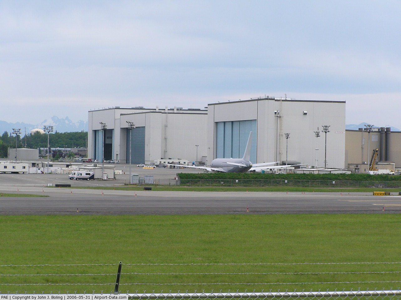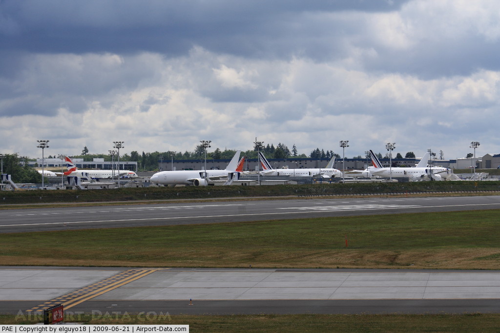 Paine Field, also known as Snohomish County Airport (IATA: PAE, ICAO: KPAE) is a public airport located in unincorporated Snohomish County, between Mukilteo and Everett, Washington. It is served by a Federal Aviation Administration control tower, and has precision and non-precision instrument approaches available to pilots. DescriptionPaine Field is home to the Boeing Everett plant, the world's largest building by volume, and the primary assembly location for Boeing's wide-body 747, 767, 777 and 787 aircraft. Paine Field is also home to Aviation Technical Services (ATS), one of the nation's largest aviation maintenance facilities. ATS operate a 950,000-square-foot (88,000 m) facility; formerly operated by Goodrich, and sold to ATS in the fall of 2007. ATS does 'heavy' checks for a number of airlines and cargo companies. According to their web page, they average of 443 Aircraft Redeliveries each year. Paine Field is home to three flight schools — Regal Air, Northway Aviation, and Everett Helicopters — making it a popular destination for flight training. HistoryPaine Field was originally constructed in 1936 as a Works Progress Administration project. At the time of development, it was envisioned that the Airport would create jobs and economic growth in the region by becoming one of the ten new "super airports" around the country. On July 25, 1966, Boeing announced that it would build the Boeing 747, a jet airliner capable of carrying nearly twice as many passengers as previous models. To build the giant jet, Boeing had to construct a facility large enough to handle the world's largest commercial jetliner. Land just north of Paine Field was chosen to construct the new facilities, including some development on the airport itself. Both the local government and the FAA concurred with the development. Work on the massive building began in August 1966 and the first employees arrived in early 1967. The 747 made its first flight at Paine Field on February 9, 1969. In late 2005, construction of the Future of Flight Aviation Center & Boeing Tour building was completed. The project, formerly known as the National Flight Interpretive Center, includes the Boeing factory tour as well as a gallery that highlights the newest developments in aviation; including both parts and components of airplanes manufactured by Airbus and Boeing. The facility was opened to private audience on December 16, 2005, the following day the facility was open to the public. The Museum of Flight also has a restoration center at the airport's main gate; located further south is the Me 262 Project. Paul Allen's Flying Heritage Collection has a large, refurbished hangar at the south end of the field, which opened as a museum June 2008. Historic Flight Foundation also houses and maintains early military aircraft. Commercial air serviceThe use and expansion of the airport is currently governed by an agreement that was forged during 1978–1979 negotiations, called the Mediated Role Determination (MRD). The MRD defines the role of Paine Field to be as a general aviation and aerospace manufacturing airport, while discouraging other types of activities including supplemental/charter air passenger service. In 2005 Snohomish County commissioned a panel to review the MRD, and in conclusion suggested the MRD "should not be ratified or revised, but should be retired as a policy document". In June 2008 the Snohomish County Council rejected the findings of the panel, and as in 1989, 1992 & 2001, restated its opposition to commercial air passenger services operating from Paine Field. The council stated: