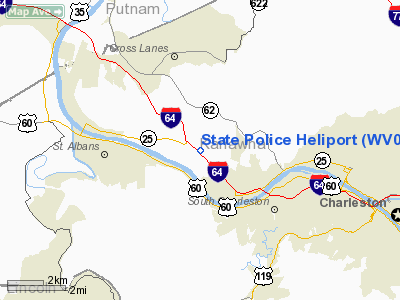 | From nearest city: | 5 nautical miles W of Charleston, WV |
