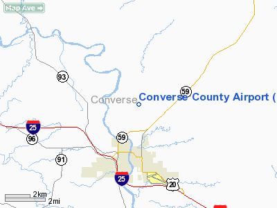 Converse County Airport covers an area of 494 acres (200 ha) at an elevation of 4,933 feet (1,504 m) above mean sea level. It has two asphalt paved runways: 11/29 is 6,534 by 100 feet (1,992 x 30 m) and 5/23 is 4,760 by 75 feet (1,451 x 23 m). It also has two helipads designed H1 and H2, each of which measures 60 by 60 feet (18 x 18 m).