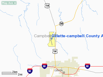 | From nearest city: | 4 nautical miles NW of Gillette, WY |