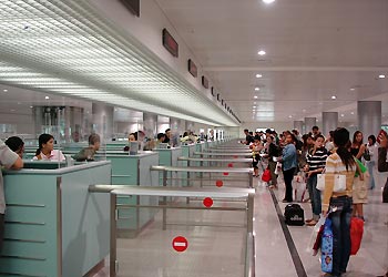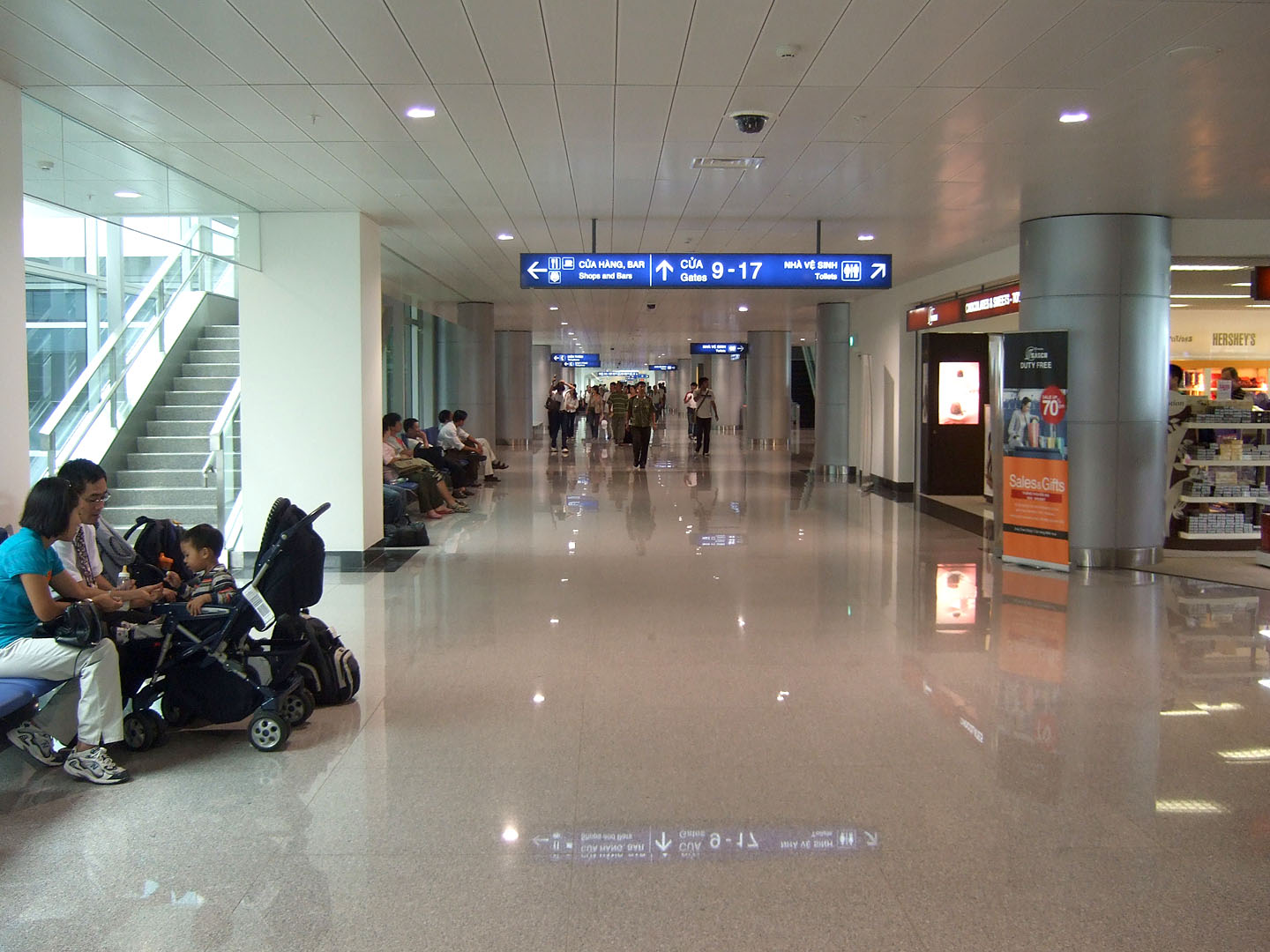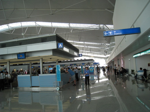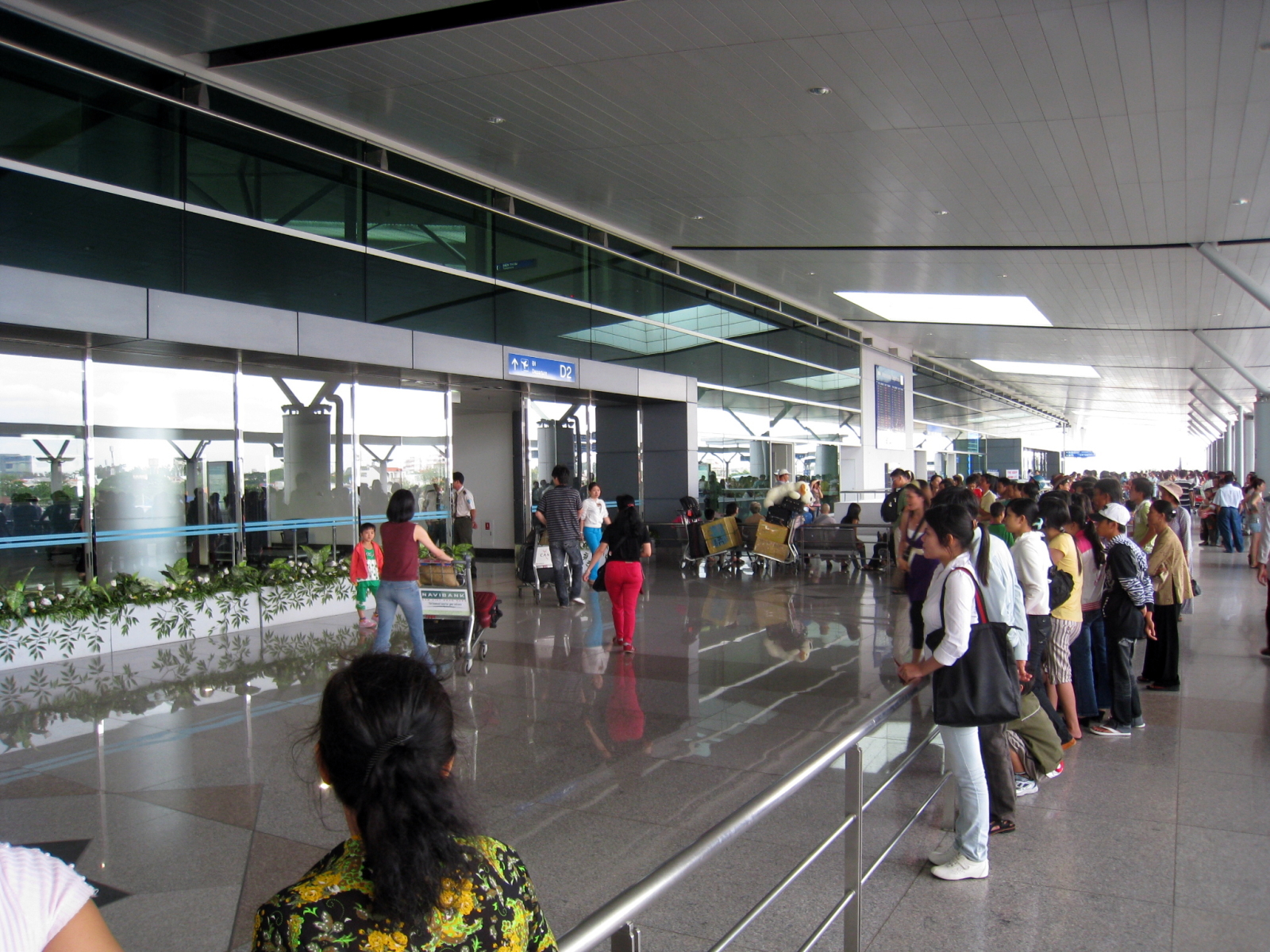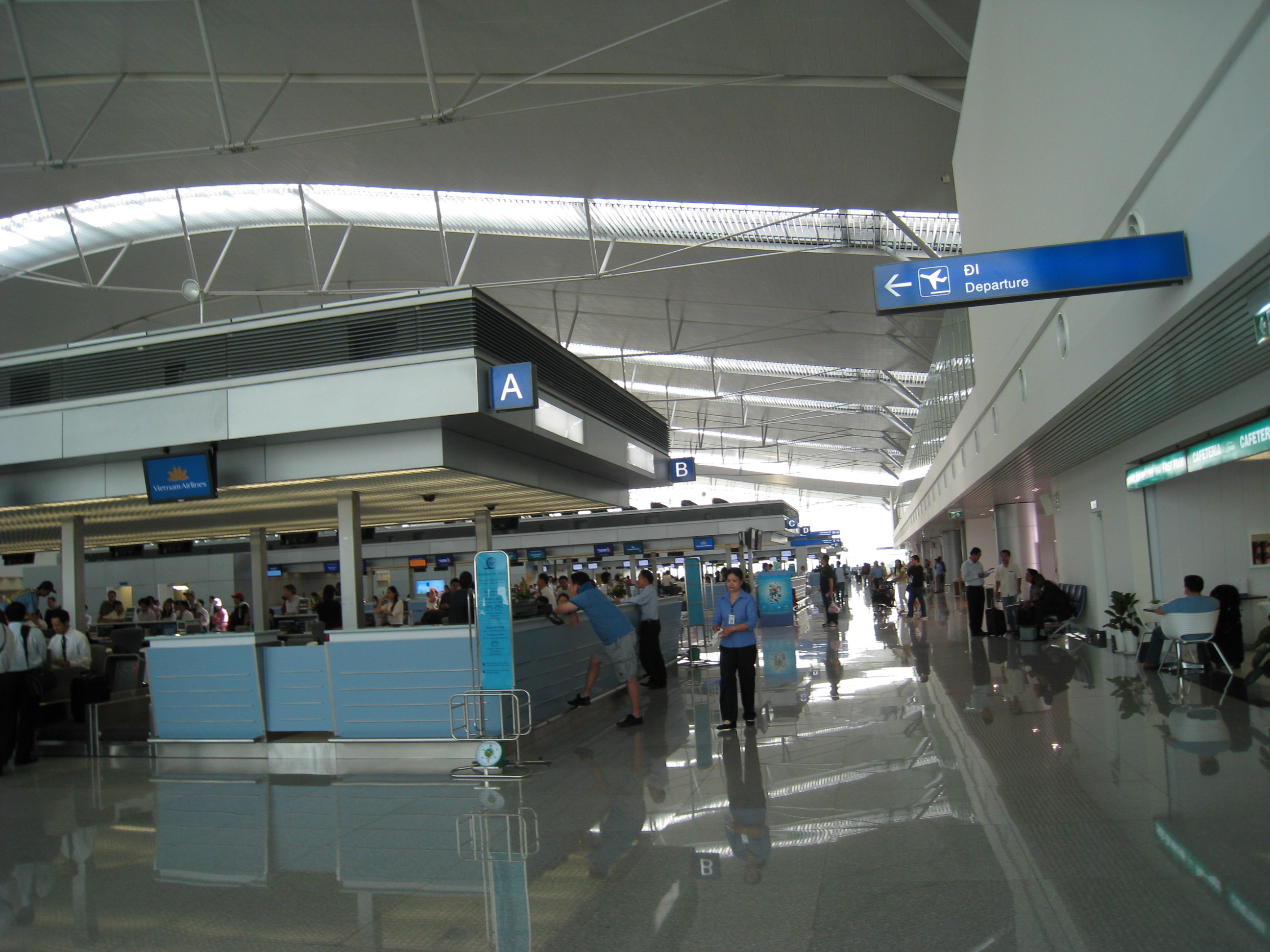Tan Son Nhat International Airport (IATA: SGN, ICAO: VVTS) (Vietnamese: Sân bay Quốc tế Tân Sơn Nhất) is Vietnam's largest international airport in terms of area (800 ha/1,977 acres compared with 650 ha/1,606 acres of Hanoi's Noi Bai International Airport and Da Nang's Da Nang International Airport). It has a handling capacity of 15-17 million passengers per year, compared with the capacity of Hanoi - Noi Bai airport of 8 million passengers and Da Nang's 2 million passengers. It is also the largest airport of Vietnam in terms of passengers handled (with an estimated number of over 12.5 million passengers per year in 2009, accounting for more than half of Vietnam's air passenger traffic), serving Ho Chi Minh City as well as Dong Nam Bo in southern Vietnam. Its IATA code SGN was derived from the city's former name of Saigon. HistoryTan Son Nhat International Airport has its origins in the early 1930s, when the French colonial government constructed a small airport with unpaved runways, known as Tân Sơn Nhất Airfield near the village of Tan Son Nhat. By mid-1956, with U.S. aid, a 7,200-foot (2,190 m) runway had been built and the airfield near Saigon became known as South Vietnam's principal international gateway. During the Vietnam War (or Second Indochina War), Tan Son Nhut Air Base (then using the alternative spelling Tân Sơn Nhứt) was an important facility for both the U.S. Air Force and the (VNAF). Between 1968 and 1974, Tan Son Nhut Airport was one of the busiest military airbases in the world. During the last days of South Vietnam, Pan Am schedules from 1973 showed Boeing 747 service was being operated four times a week to San Francisco via Guam and Manila . Continental Airlines operated up to 30 Boeing 707 military charters per week to and from Tan Son Nhut Airport during the 1968-74 period. On 9 December 2004, United Airlines became the first U.S. airline to fly to Vietnam since Pan Am's last flight during the Fall of Saigon in April 1975. UA 869 (operated by a Boeing 747-400) landed at Ho Chi Minh City, the terminus of the flight that ran from San Francisco via Hong Kong. On 29 October 2006, this service was switched from San Francisco to Los Angeles with a stop in Hong Kong, operating as UA 867 (also using a Boeing 747-400). In 2009, the service UA 869 has resumed once again from San Francisco via Hong Kong International. In 2006, this airport at Ho Chi Minh (HCM) City served approximately 8.5 million passengers (compared with 7 million in 2005) with 64.000 aircraft movements . HCM - Tan Son Nhat Airport has recently accounted for nearly two thirds of the arrivals and departures at Vietnam's international gateway airports.. Due to increasing demand (about 15%-20% per annum), this airport has been continuously expanded by the Southern Airports Corporation. Tan Son Nhat International Airport served 13 million passengers in 2008 compared to 11 million in 2007. According to the new expansion plan announced by the Vietnamese government, the airport will be enlarged to provide facilities and space for around 70 aircraft to land by 2015, and to handle 23.5 million passengers and 600,000 tonnes of cargo per annum. New international terminalA new international terminal funded by Japanese ODA and constructed by a consortium of four Japanese contractors (KTOM, abbreviation of 4 contractors's names: Kajima - Taisei - Obayashi - Maeda), opened in September 2007 with a capacity for 8-10 million passengers a year, thus giving the airport a total annual capacity of 15-17 million passengers. The old terminal is now used for domestic flights only. After 2015, when Long Thanh International Airport is completed, Tan Son Nhat will serve domestic passengers only. The international terminal is open 24 hours a day. FacilitiesFollowing the opening of its new international terminal in September 2007, HCM - Tan Son Nhat has two major terminal buildings with separate sections for international and domestic flights. Four jetways were added in the late 1990s prior to which aircraft had to use remote parking and passengers were transferred to/from the terminal by shuttle buses. The capacity of the new terminal, once fully completed, will be 8 million passengers per annum. After 2015, when Long Thanh International Airport is completed, Tan Son Nhat will serve domestic passengers only. The Prime Minister of Vietnam by Decision 1646/TTg-NN has approved the addition of 30 hectares (74 acres) of adjacent area to extend the apron and to build a cargo terminal due to the rapid increase of passenger (which will reach to 11 million in 2007 and is expected to reach 17 million in 2010, compared to 7 million and 8.5 million in 2005 and 2006 respectively) and cargo volume at this airport Arrivals and Departures are split across two floors. Terminals, airlines and destinationsDomestic flights operate from Terminal 1, whilst international flights use Terminal 2. Passenger